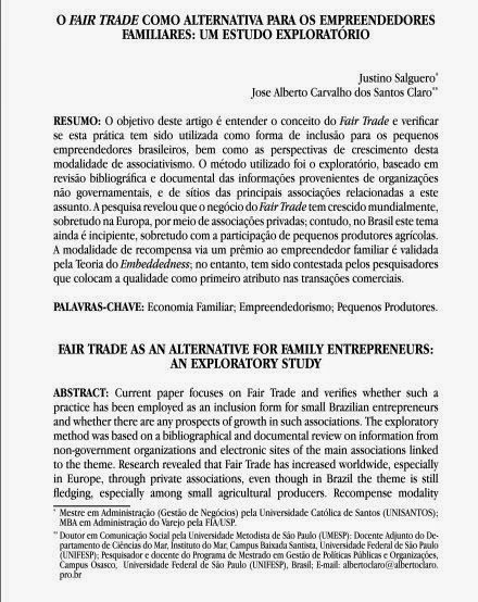 Artigo Científico Publicado: “O fair trade como alternativa para os empreendedores familiares: um estudo exploratório”